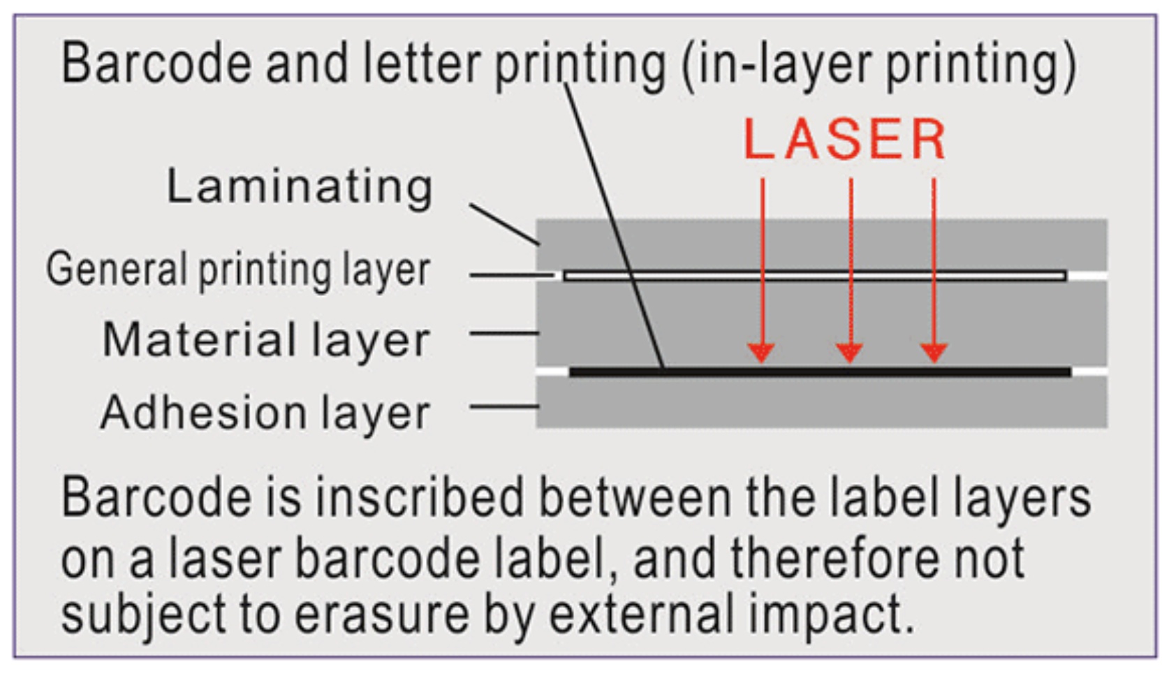 as the laser penetrates the surface of the label without damaging it and prints it in the middle layer of the label.